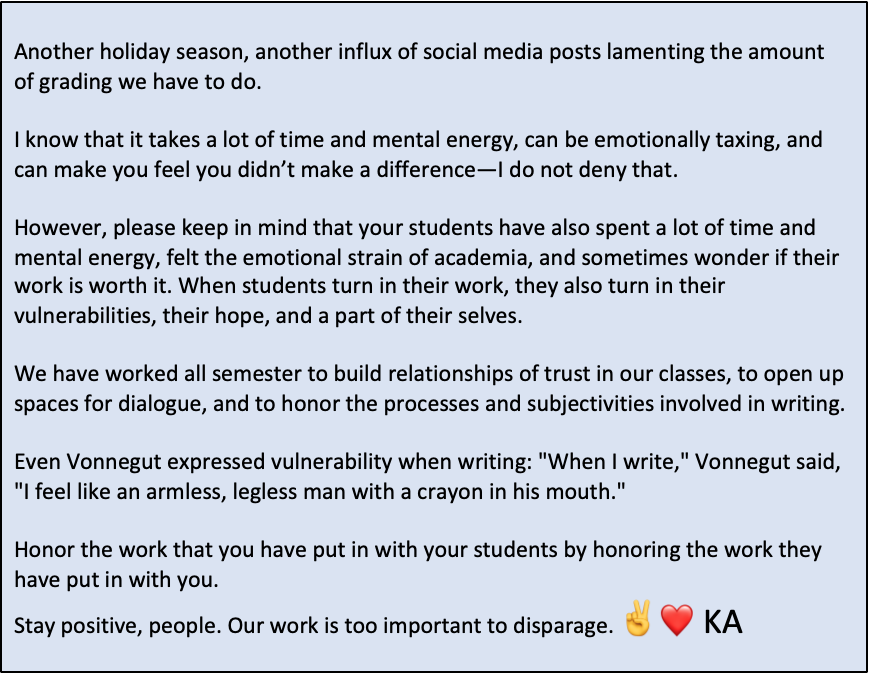 Posts Feeling the Grade Feeling the Grade Warning: Sanctimonious-seeming, but genuinely-feeling post to follow… Share this: Click to share on X (Opens in new window) X Click to share on Facebook (Opens in new window) Facebook Like Loading... Related