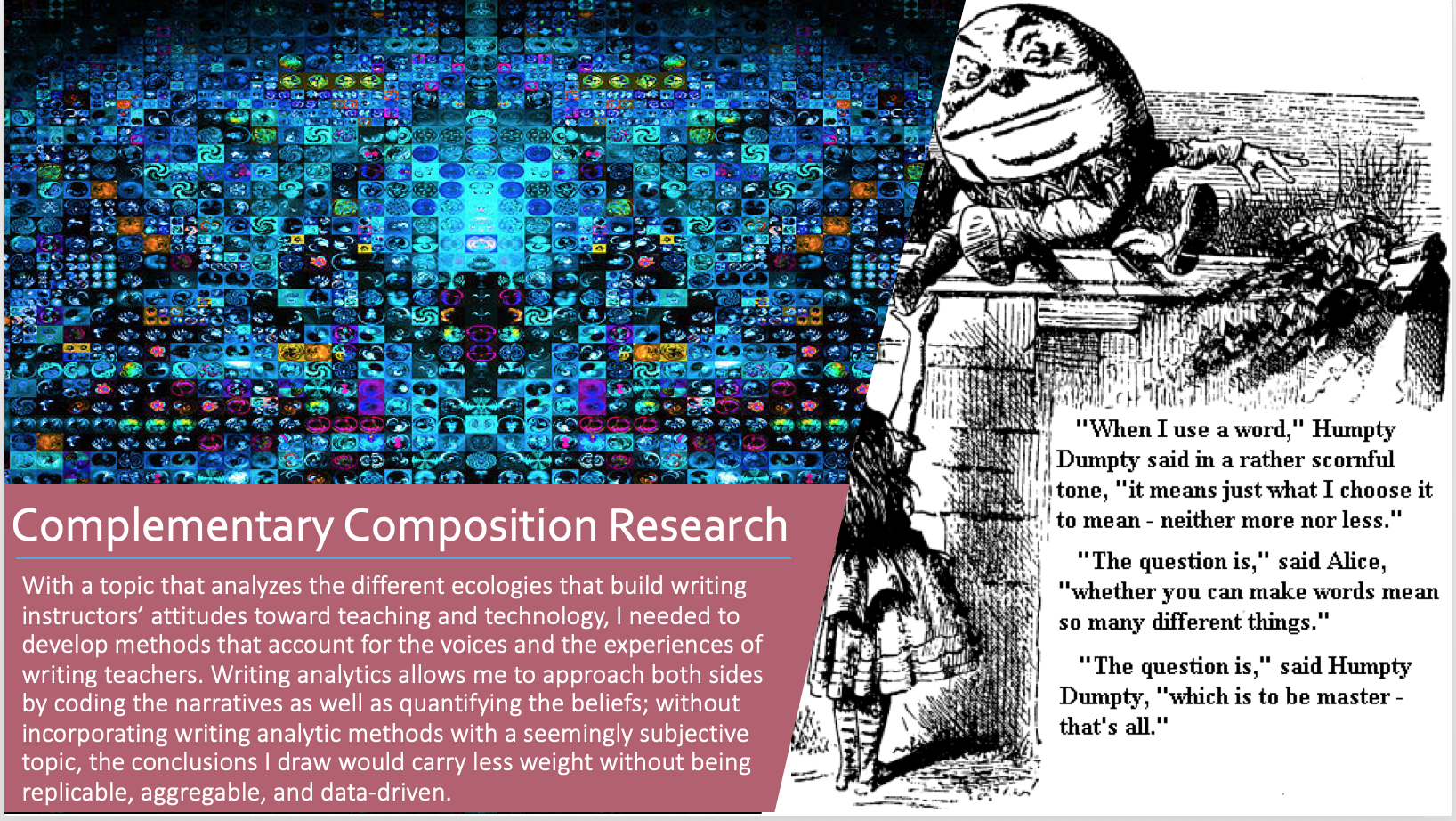 For many years, my composition research has brought me into the digital realm. Starting with mandatory e-portfolios in a First-Year Writing and moving into digital essays and websites, I have developed quite a cache of digital pieces using the website builder Wix. I initially chose Wix due to its relatively small learning curve for the students and its intuitive design for new web designers.